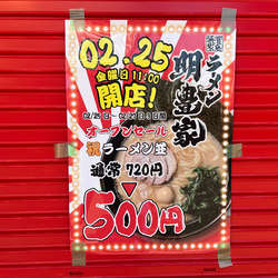 | 備考 | 2月25日から27日までの3日間 オープンセールでラーメン500円で提供 |